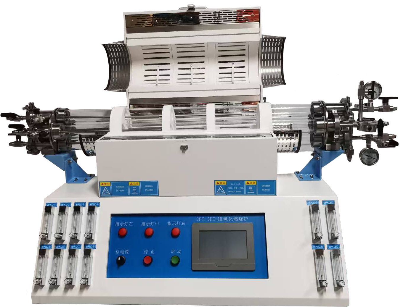 溫控系統(tǒng) | ?包含一款YD858型溫度控制器; ?PID控制和自整定調(diào)節(jié); ?智能化50段可編程控制; ?控溫精度:±1℃; ?三個控溫儀表單獨控制三個溫區(qū); ?系統(tǒng)配采用觸摸屏控制,能夠?qū)崟r記錄溫度的數(shù)值并且進行數(shù)據(jù)保存。 ?除總電源開關(guān)和氣體流量調(diào)節(jié)外的所有控制都集成在觸摸屏上; ?實驗可以中途暫停,重啟后可選擇中間某一段往下運行; ?升溫速率,PV、SV間采用勻速升溫程序,在設(shè)定的時間內(nèi)按照統(tǒng)一斜率升至目標溫度; ?控溫可實現(xiàn)一鍵同時加熱功能,也可以單個獨立控制加熱; ?樣品區(qū)和催化區(qū)分別可以存儲不少于20套不同樣品的方案,方案名稱可編輯,每套方案可以設(shè)置不少于30個加熱段。 | |